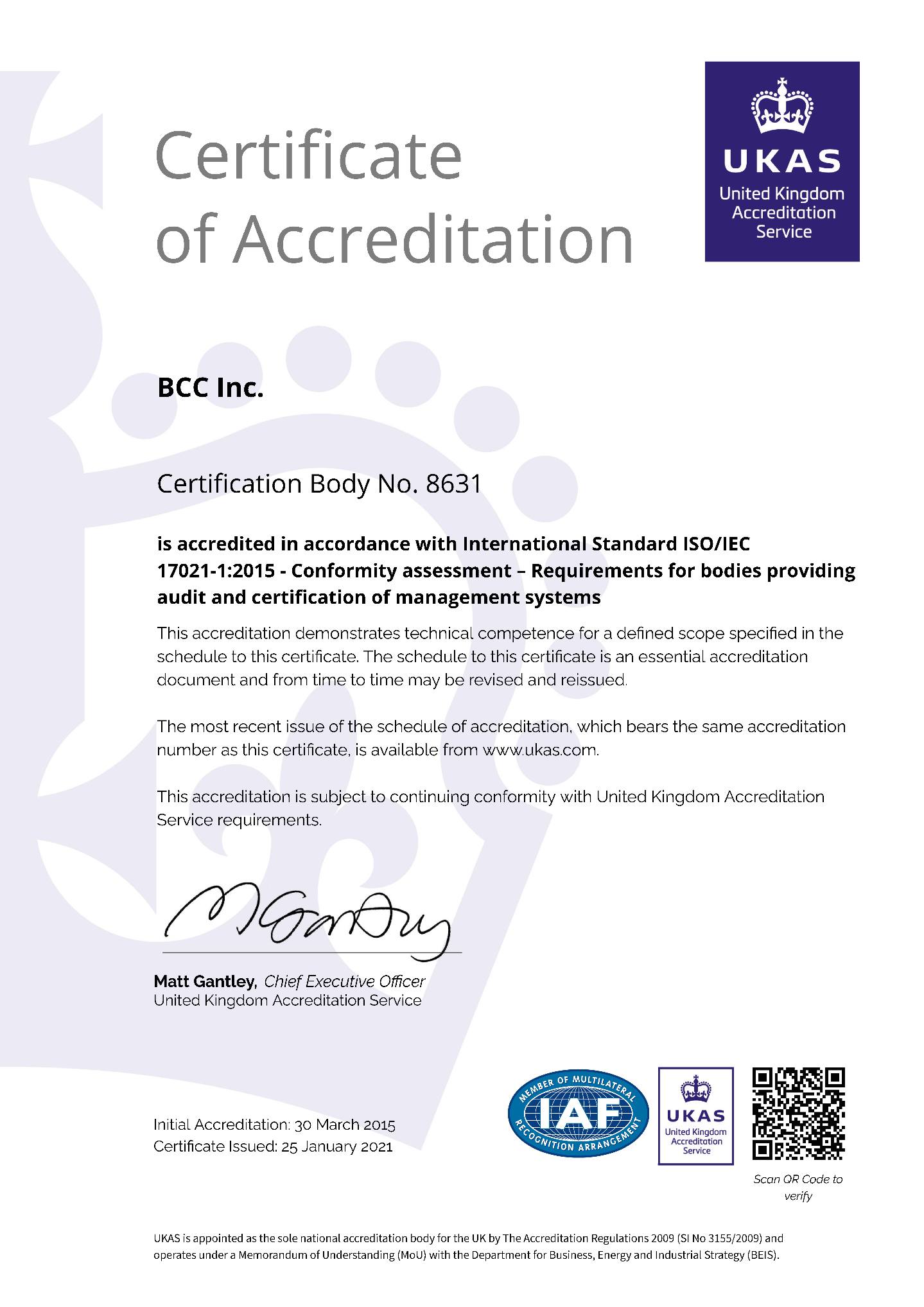 UKAS accredited certificate ANAB approved certificate SAAS Approval Certificate Management system certification body accreditation certificate