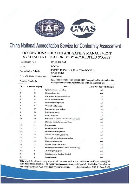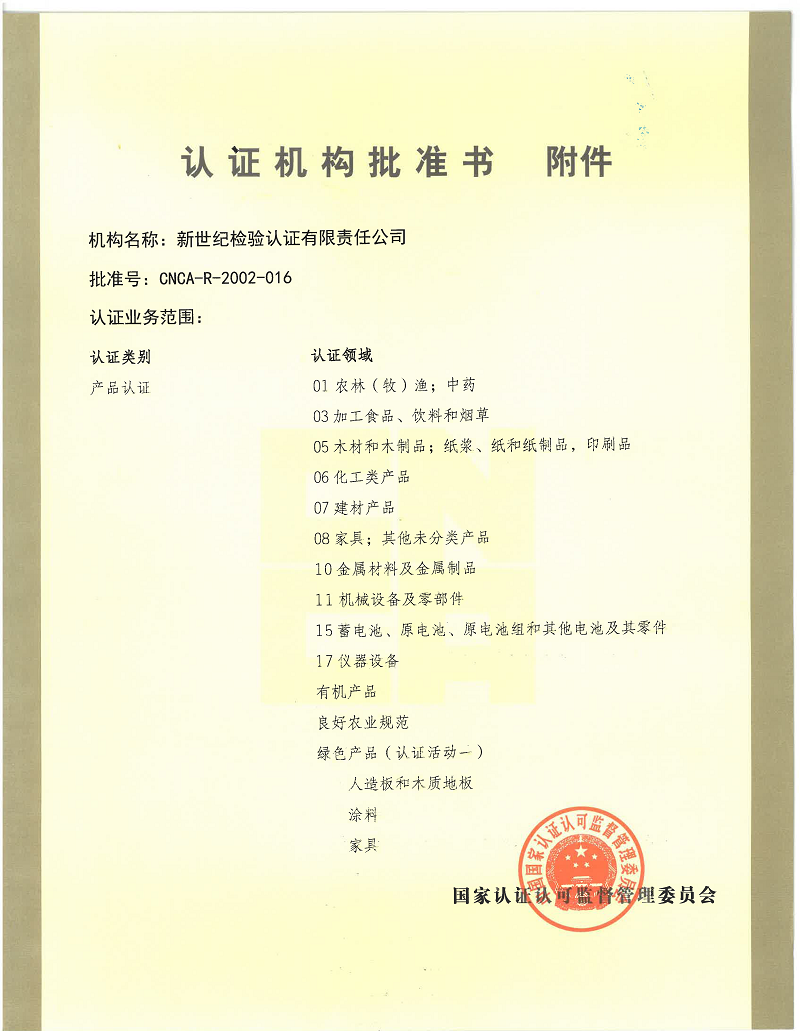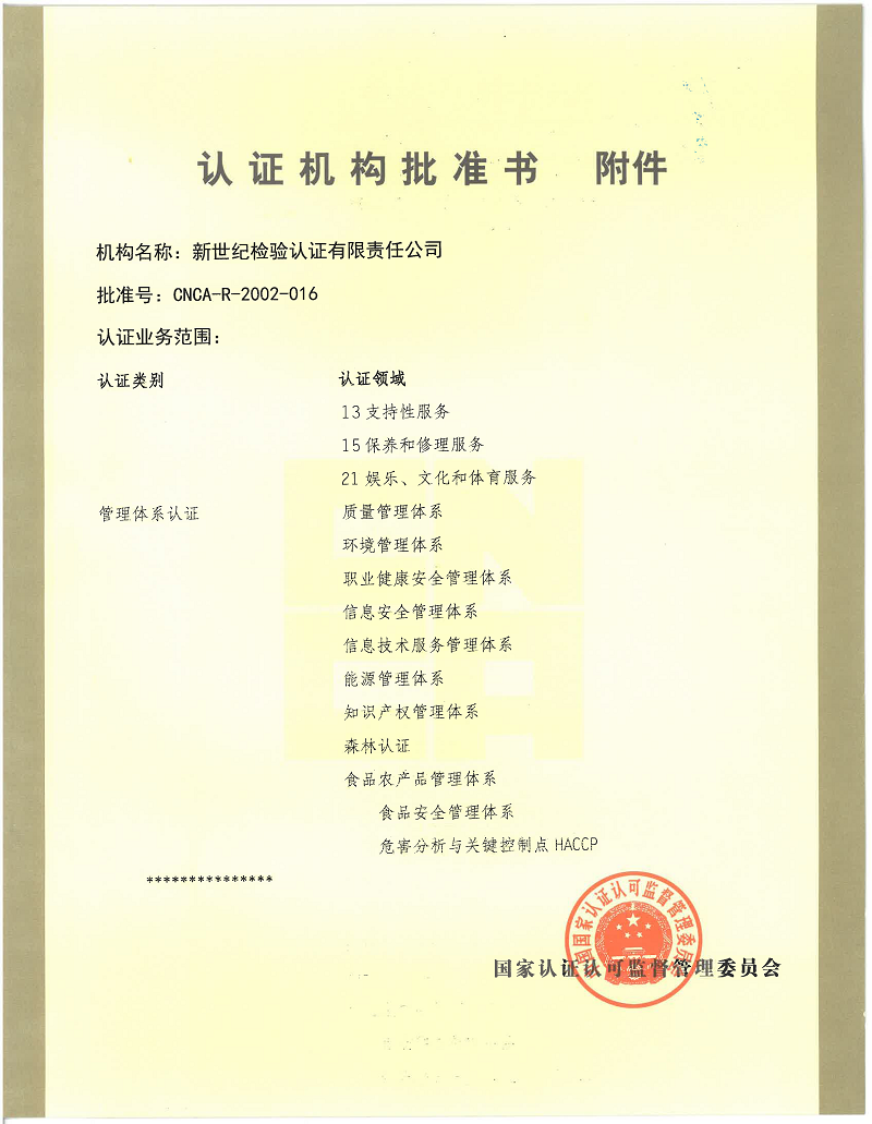 Product certification and recognition certificate Organic product certification body recognized business scope Occupational health and safety management system certification body recognized business scope(1) Occupational health and safety management system certification body recognized business scope(2)