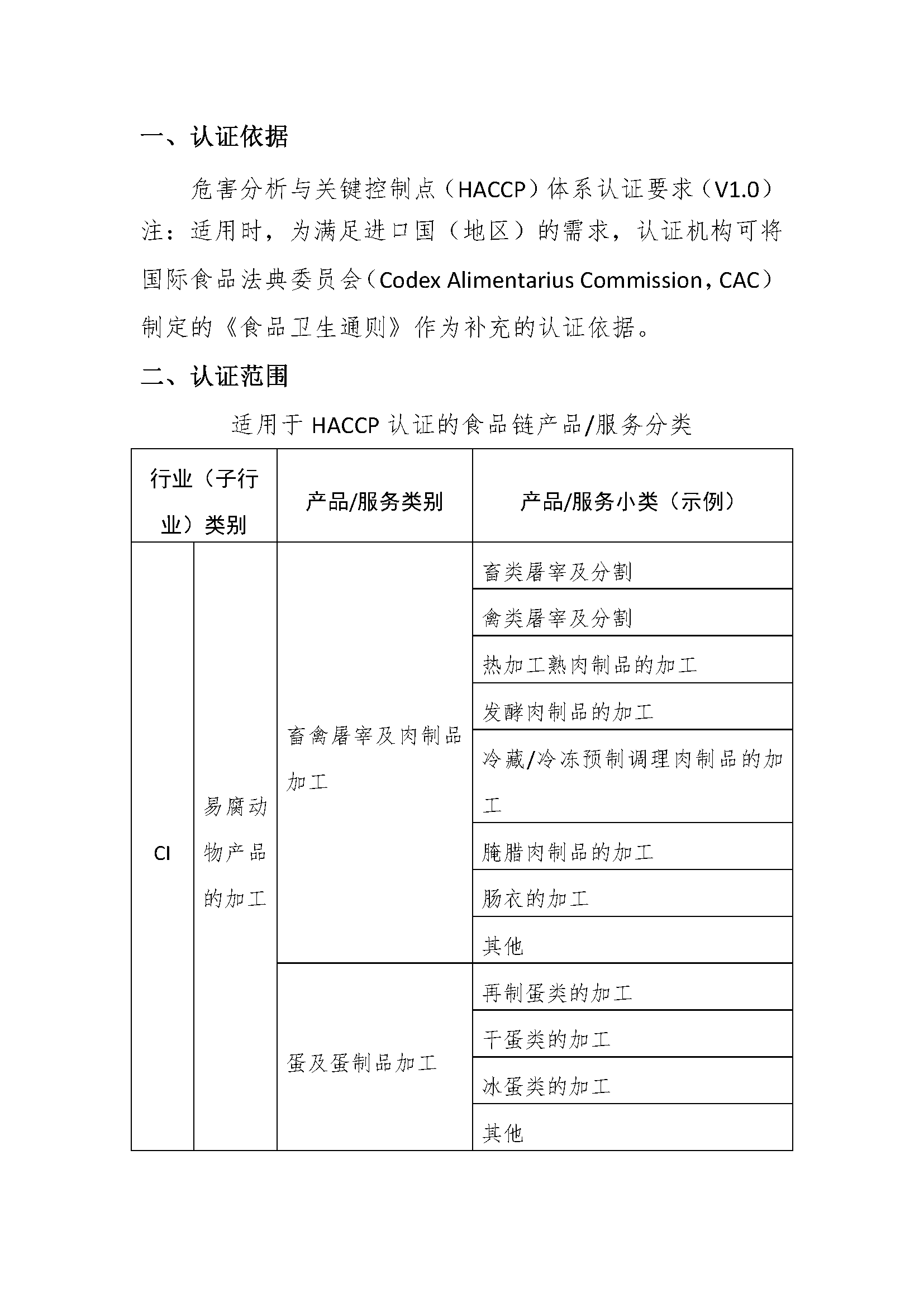 HACCP的認證依據(jù)和認證范圍,請看下圖(點擊可放大看)。如果貴司要申請辦理,可咨詢我們,進一步了解情況!