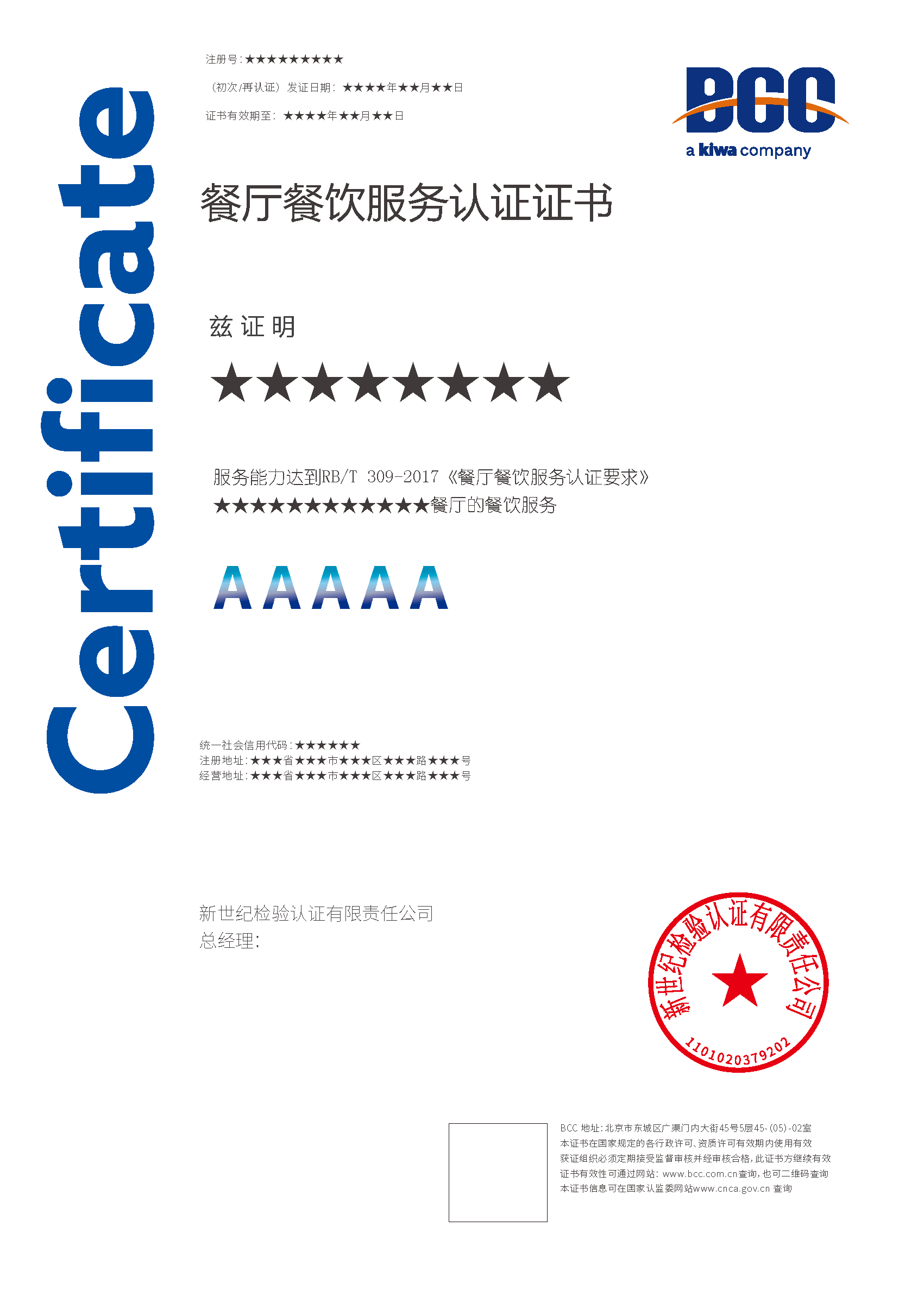 餐廳餐飲服務(wù)認(rèn)證的證書有效期為三年,每年BCC會對獲證組織進行必要的監(jiān)督審查,證書到期前還要實施再認(rèn)證審查。