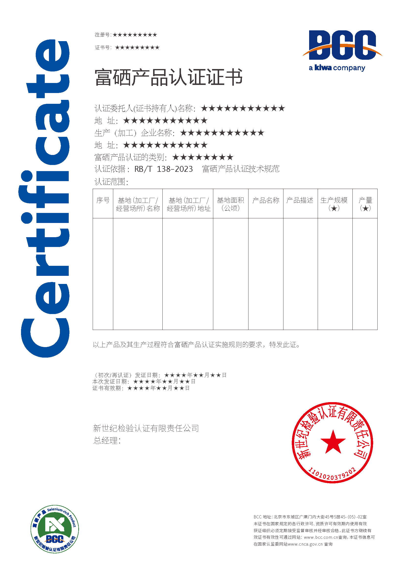 富硒產(chǎn)品認(rèn)證證書有效期最長為12個月。獲證組織應(yīng)至少在認(rèn)證證書有效期結(jié)束前3個月向BCC提出再認(rèn)證申請。