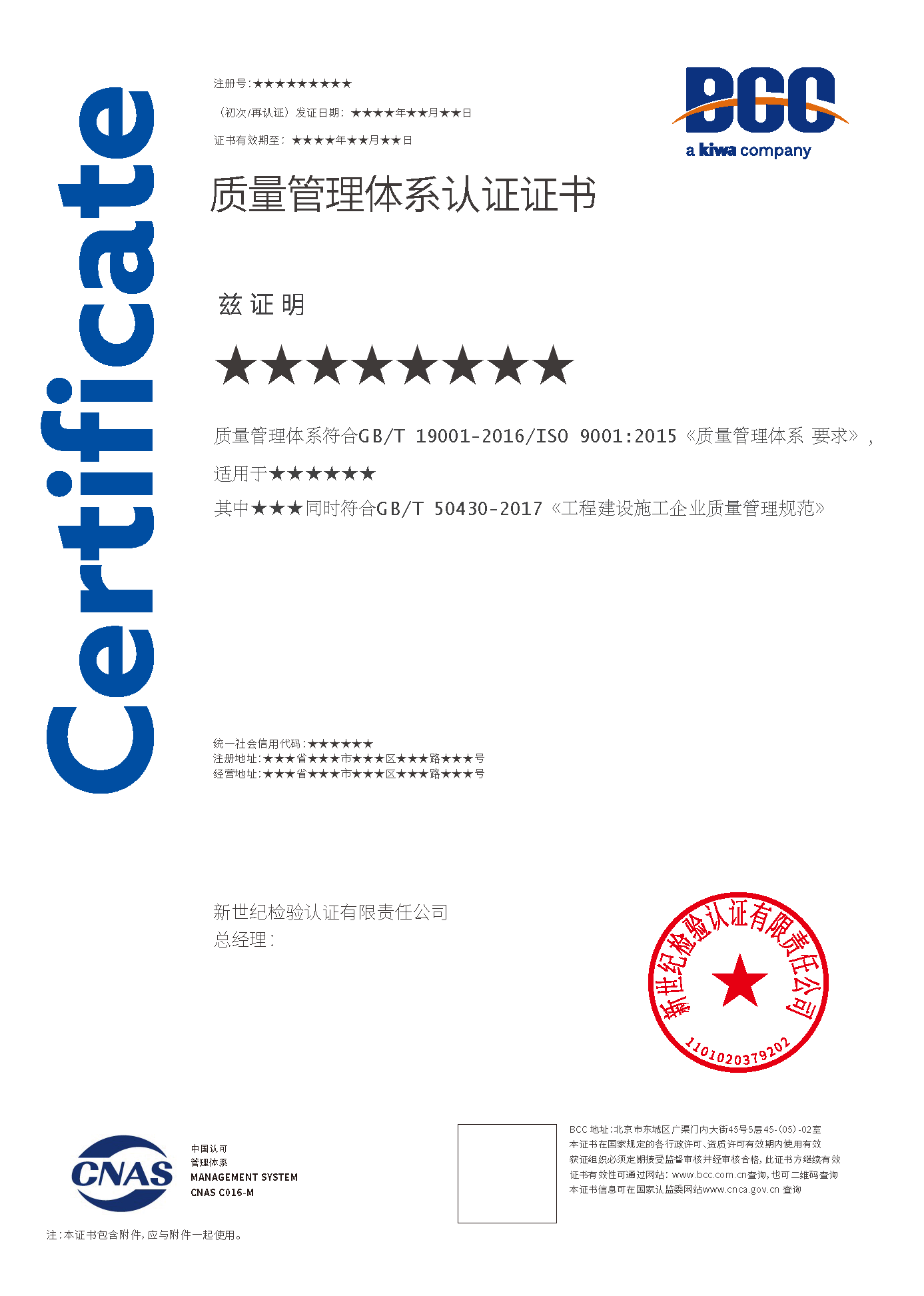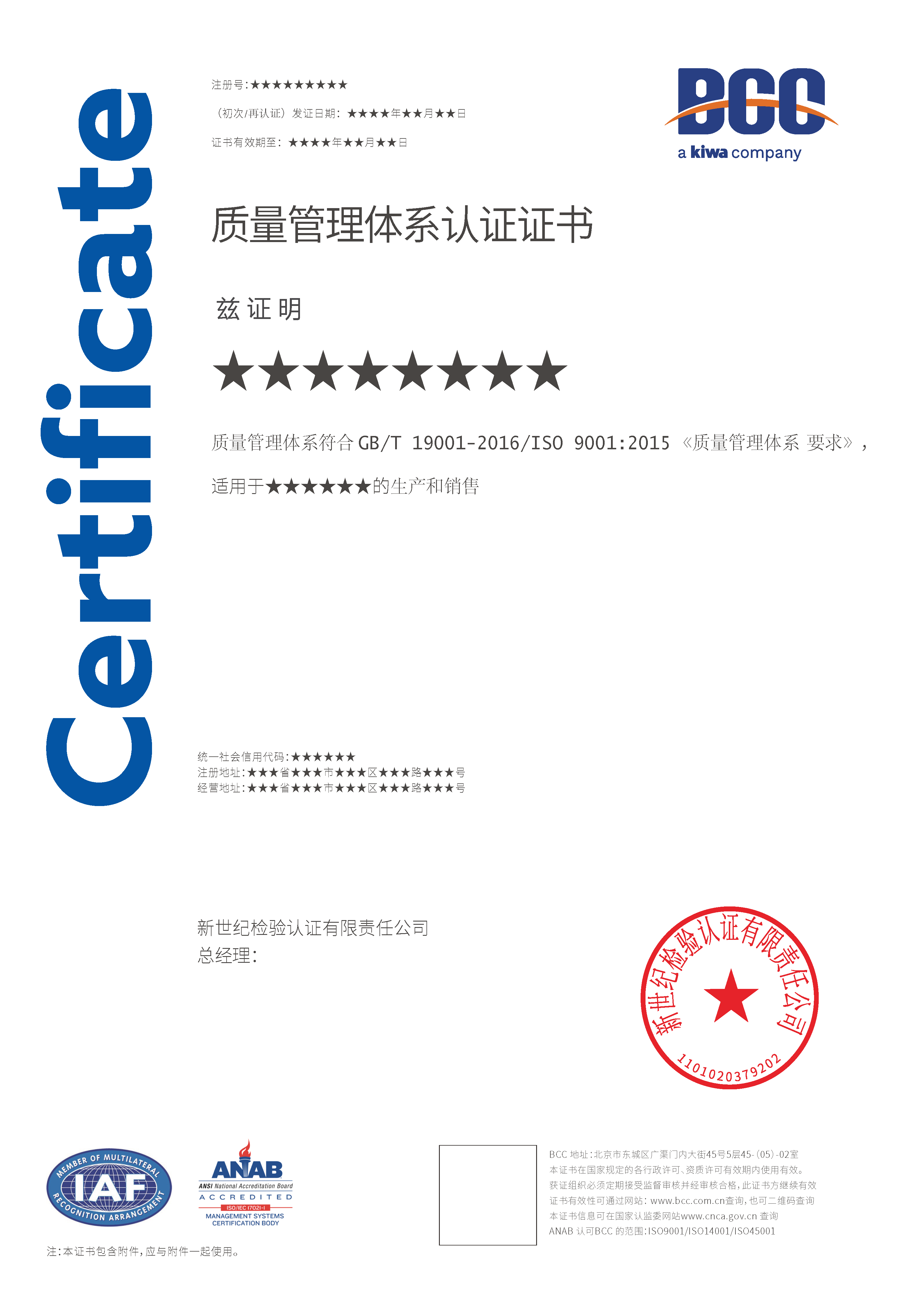 本頁涉及的認證服務中均有對應的《認證實施規(guī)則》,BCC擁有其最終解釋權。任何組織及個人未經(jīng)BCC許可,不得以任何形式全部或部分使用(法律要求除外)認證相關信息。如需獲取相關實施規(guī)則請用以下方式聯(lián)系獲?。弘娫挘?10-58579316 郵箱:fwjs@kiwa.cn