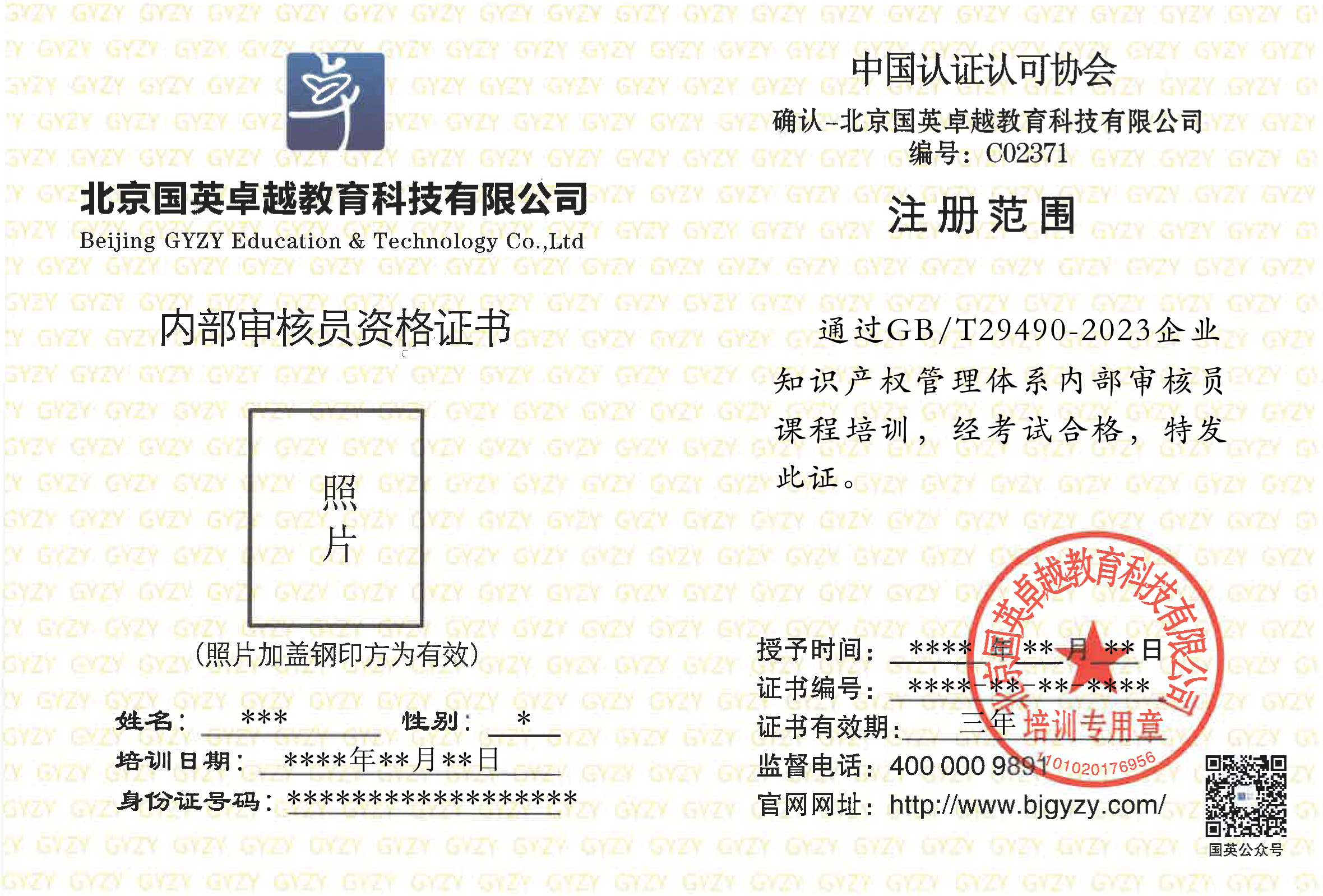 Kiwa BCC是首批獲CNAS認可的知識產權認證機構,可為企業(yè)頒發(fā)帶有“CNAS”標識的知識產權管理體系認證證書。認證所用標準包括:GB/T 29490-2023《企業(yè)知識產權合規(guī)管理體系要求》、GB/T33250-2016《科研組織知識產權管理規(guī)范》、GB/T33251-2016《高等學校知識產權管理規(guī)范》。