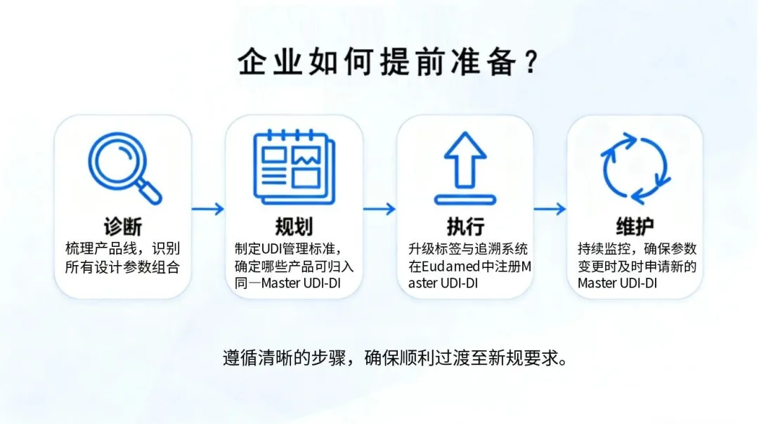 3. 提前合規(guī)窗口:法規(guī)允許制造商在 2028 年 11 月 1 日前,提前按照新規(guī)則分配 Master UDI-DI,為企業(yè)預(yù)留了充足的系統(tǒng)調(diào)整時(shí)間。