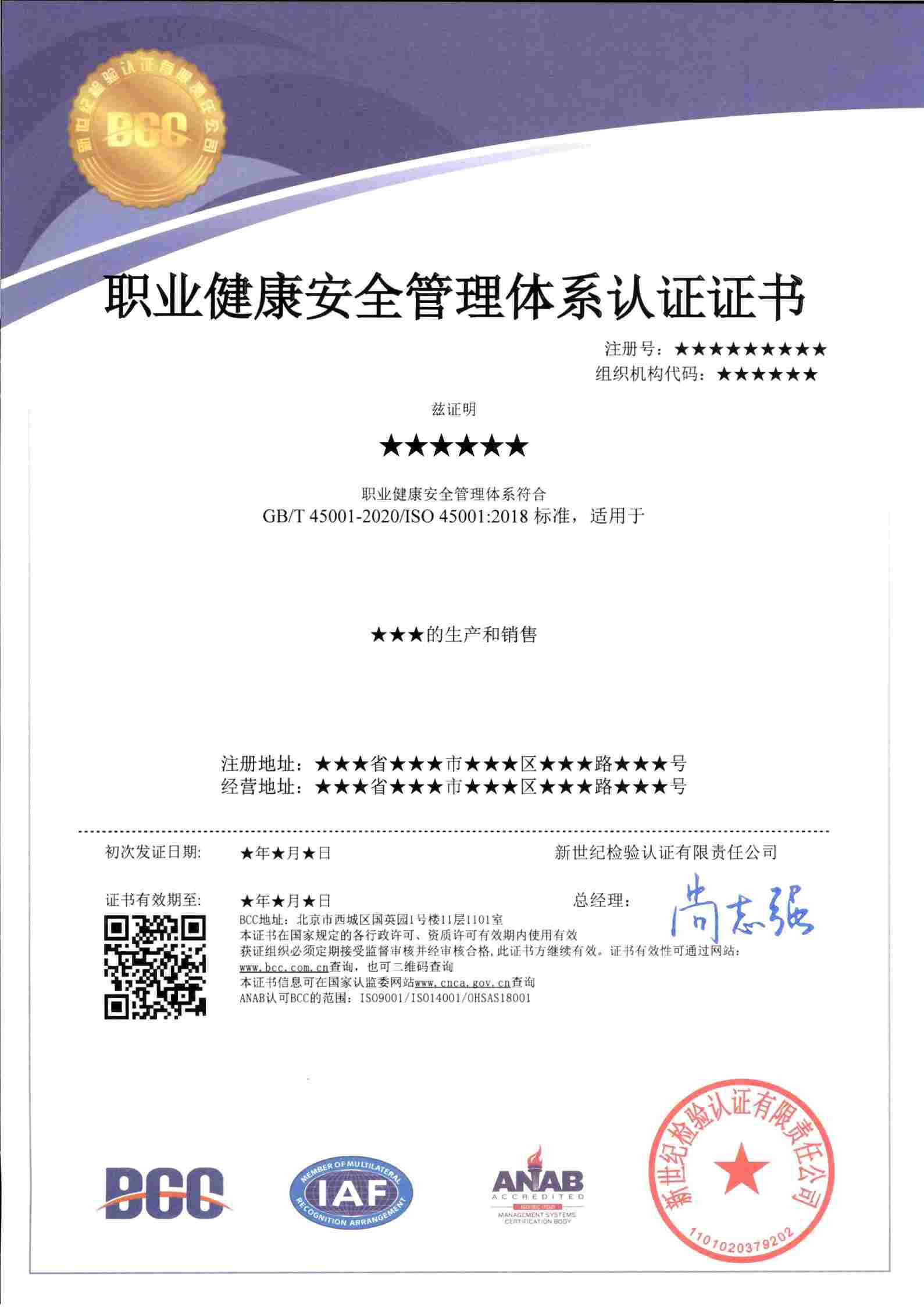 職業(yè)健康安全管理證書(shū)(ANAB) 職業(yè)健康安全管理證書(shū)(CNAS)